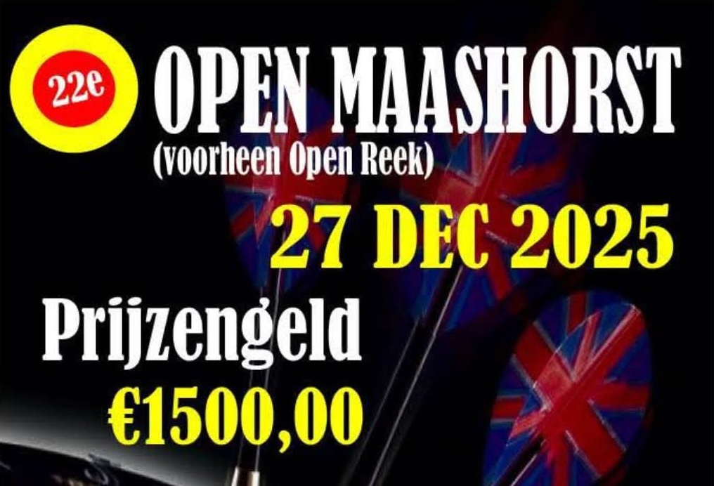 Op 27 december wordt in Het Wapen van Reek het 22e Open Maashorst darttoernooi georganiseerd. Inschrijven kan tot 13:00u aan de wedstrijdtafel en kost € 10,- De zaal is open vanaf 11:00u. Kijk voor meer informatie op: www.openreekdarts.nl